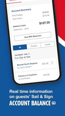 • Real-time information on guests’ current Sail & Sign shipboard account balance