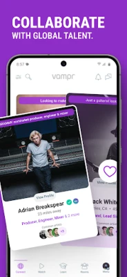 Vampr is designed to help you get hired, find people to collaborate with, distribute and monetize your music, and build a successful career in the music industry.
