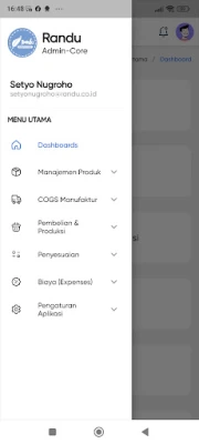 Randu - Admin Core adalah aplikasi yang menangani manajemen produk, manajemen pembelian material, pembelian bahan setengah jadi, manajemen penyesuaian stok dan pengaturan aplikasi.