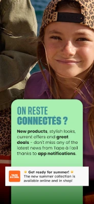 With myTAO app, unlock the potential of your children's wardrobe ! Discover 100% of the pieces sold in store and a lot more ! Access to a huge choice ! Yes, here, we don't have a tiny storage room :)