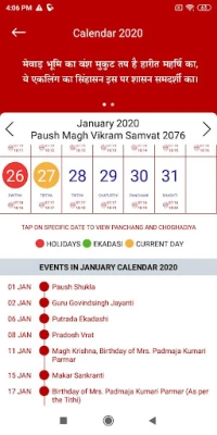 The Palace Calendar is an application to view Day wise Choghadiya and Panchang for any day of the calendar. Also shows varsh (Year), maah (month purnima and amavasya), zodiac of moon, along with their end times.