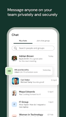 • Create and join employee resource groups focused on work, hobbies, interests, and more