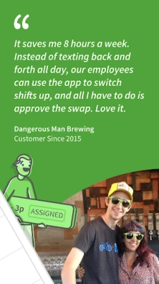 • Confident shift coverage - Receive shift confirmations from employees and be notified immediately of swaps and drops.